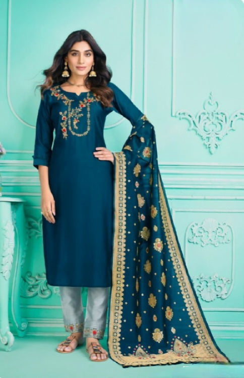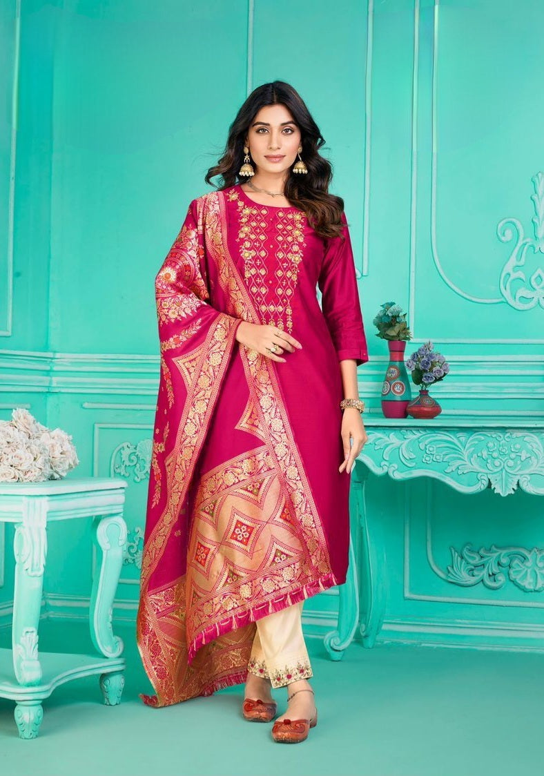 [Ready SG Stock] Deepavali & Wedding-Wear Viscose Silk Designer 3 Pcs Punjabi Suit + Inner [Indian Dresses]