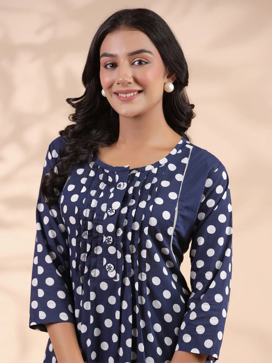 [ Ready SG Stock ] Blue Polka Dot A-Line Cotton Kurta With Pant 2 Pcs Punjabi Suit [Indian Smart Casual Wear]