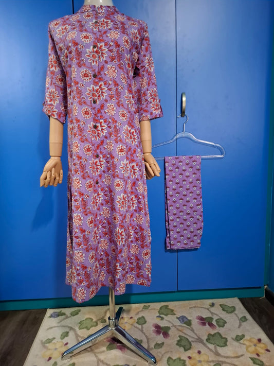 [ Ready SG Stock ] Cotton A-Line Floral print 2 Pcs Punjabi Suit / Co-Ord Set [Indian Smart Casual Wear]