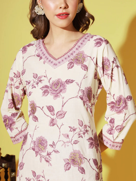 [ Ready SG Stock ] Purple Golden hue Floral Printed Straight cut 3 Pcs Cotton Punjabi Suit [ Indian Dresses ]