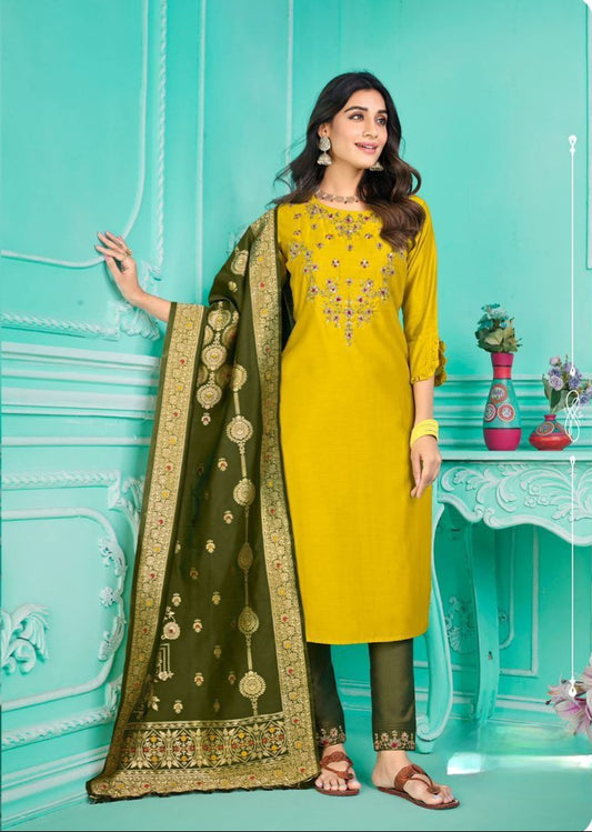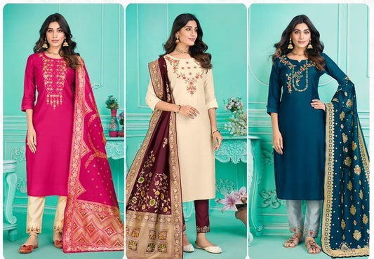 [Ready SG Stock] Deepavali & Wedding-Wear Viscose Silk Designer 3 Pcs Punjabi Suit + Inner [Indian Dresses]