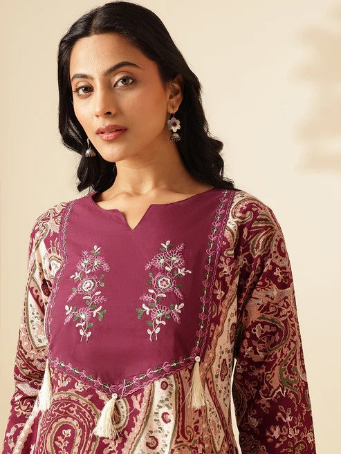 [Ready SG Stock] Wine Paisley Printed Flared Cotton blend Punjabi Top Kurta / Top Only [Indian Casual Dresses]