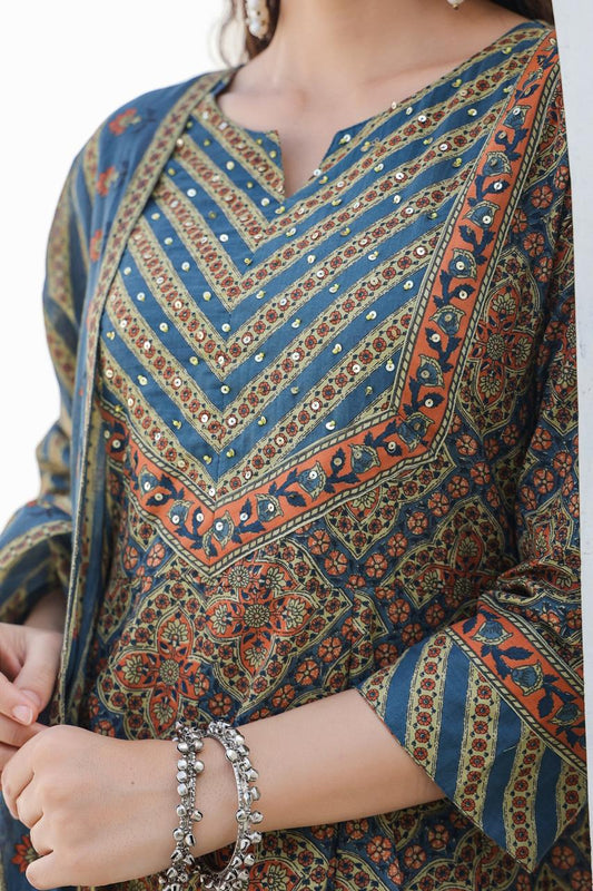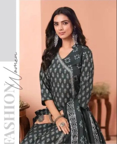 [Ready SG Stock] Earthy Peacock Green Pure Cotton Anarkali 3 Pcs Punjabi Suit with Dupatta [ Indian Dresses ]