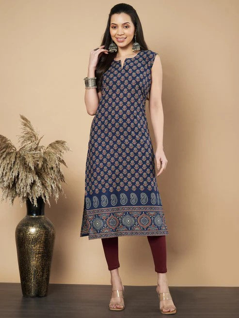 [ Ready SG Stock ] Navy Floral Print Straight Cotton Kurta / Only Top [Indian Dresses]