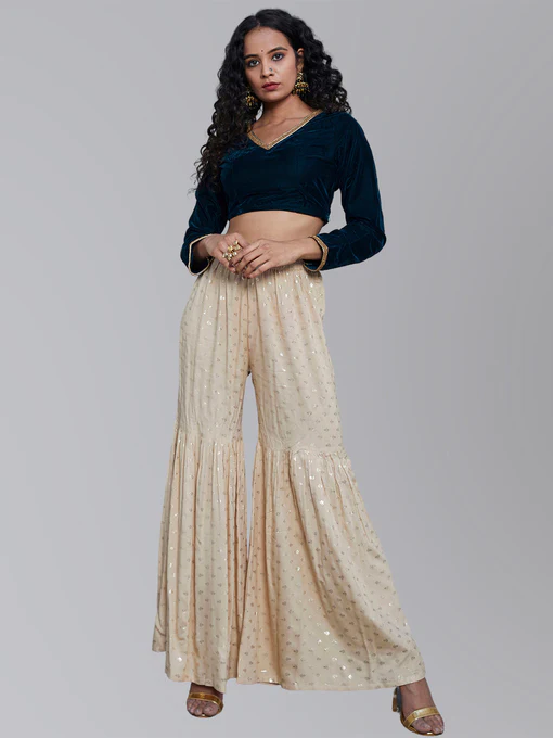 Versatile Pairing Options: You can pair this sharara with a crop top or short kurta to create multiple stunning looks.