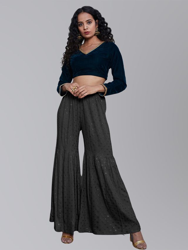 Pair this sharara with a crop top for a modern look or style it with a short kurta for an ethnic touch. The possibilities are endless!