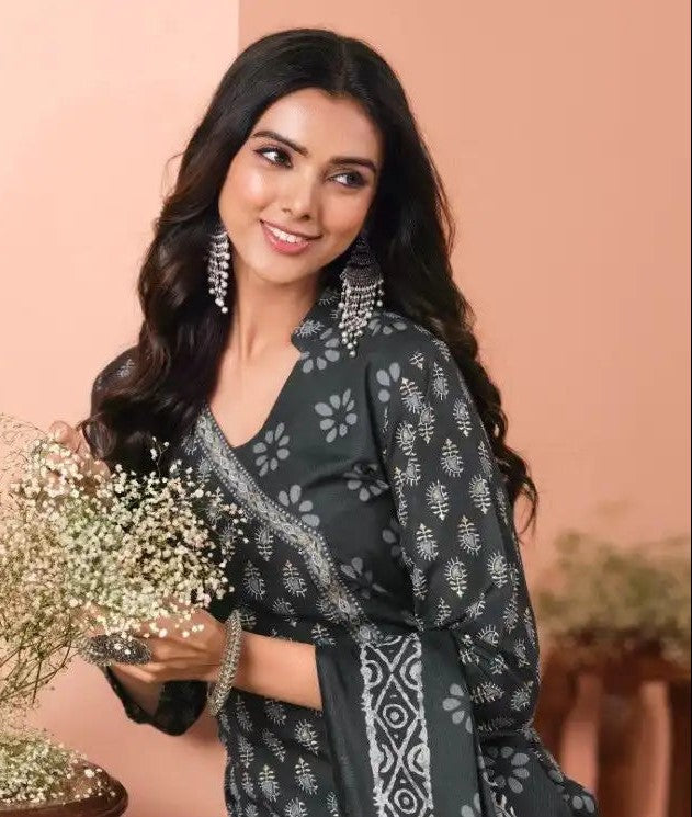 This traditional dress is a must-have for any Women's wardrobe. Made with Cotton Blend material, this Afgani\Pathani Punjabi 3 pcs suit with Dupatta is perfect for all seasons.