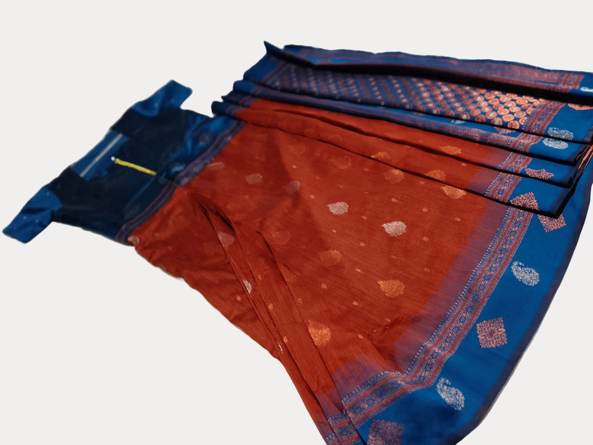 - Saree fabric: Cotton Blend | Blouse Fabric: Cotton Blend with Linings