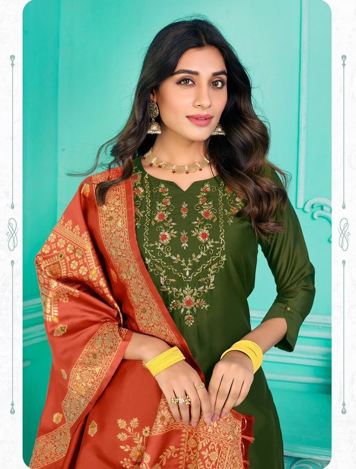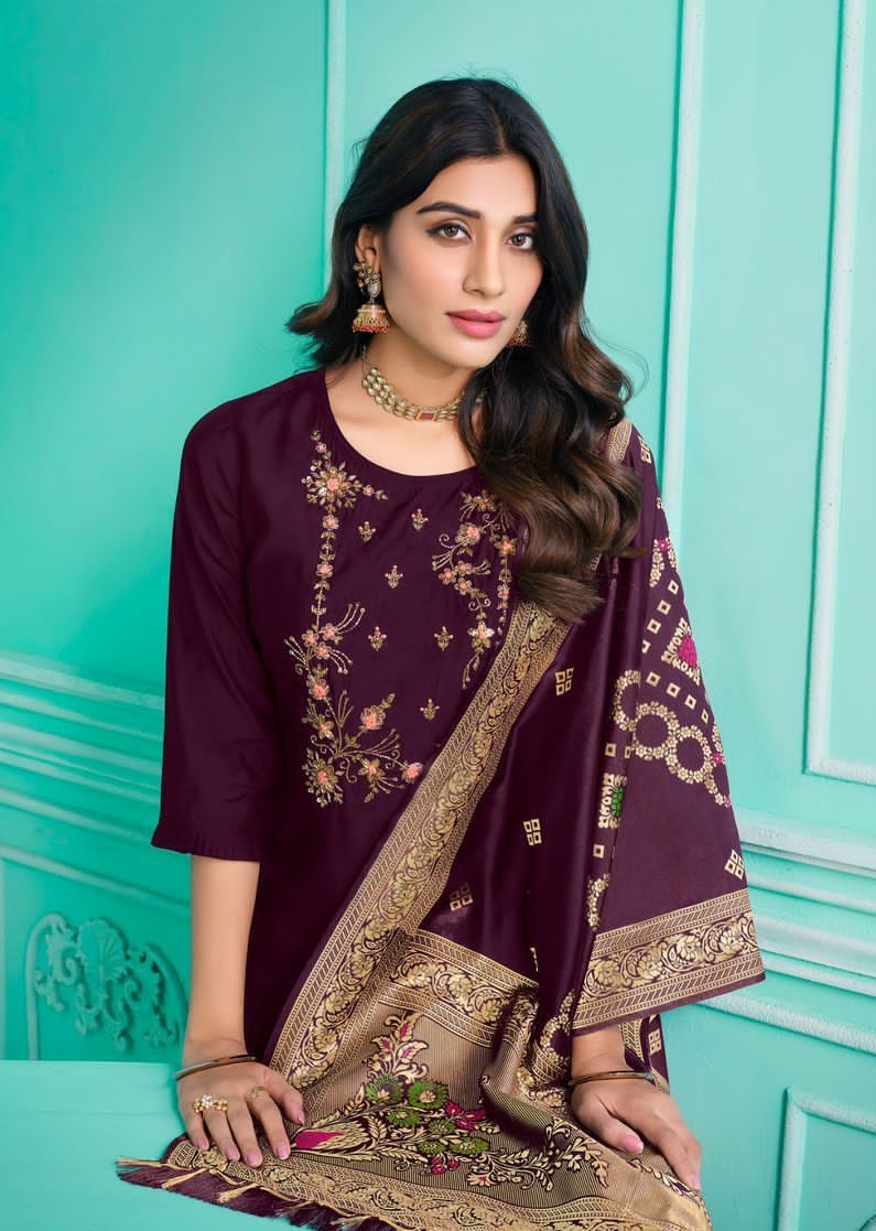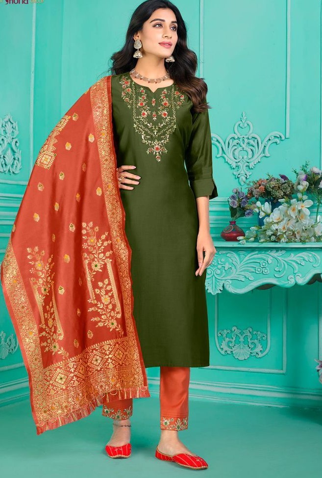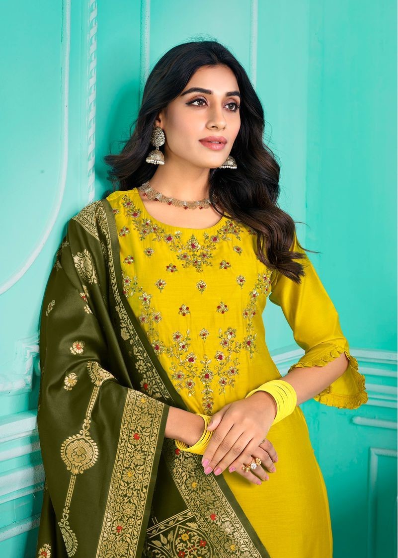 STYLE: Elevate your wardrobe with this stunning Punjabi suit, perfect for any Special occasion from Festival, Party to weddings and beyond. Material: Made with high-quality Viscose Silk material with Soft Cotton Inner, providing both comfort and a luxurious feel. Quantity: Each pack contains 1 set of three pieces of traditional Punjabi suit. Season: Perfect for any season- summer or winter! Culture: This dress is perfect for those who love ethnic wear. It's designed to make you feel confident yet comfortable in your own skin. Linings: YES The contrast colour and Complimentary woven thread embroidery of French Knot & Jardosi on the dress are beautifully crafted by skilled artisans who focus on the intricate details of traditional clothing. The embellishments make it a unique piece that will stand out in any occasion or event you attend. The regular size type makes it easy to find your perfect fit, so you can look as stunning as ever in this classic piece of clothing. Don't miss out on adding this gorgeous Punjabi suit to your collection! Product Care: For Embroidery Dresses (Sequin, Golden, Silver Thread, Real or False Mirror) Dresses First Time Dry Clean Only Use a mild detergent, cold water. Dresses can Hand Wash For Good Maintenance. Just Soak for 5 Min in Liquid Soap then Clean Carefully without squeezing, Hang Dry on Hangers. Iron carefully. Store in a cool, dry place with good ventilation. Wash Dupatta Separately. Turn the garment inside out before washing to avoid abrasion.